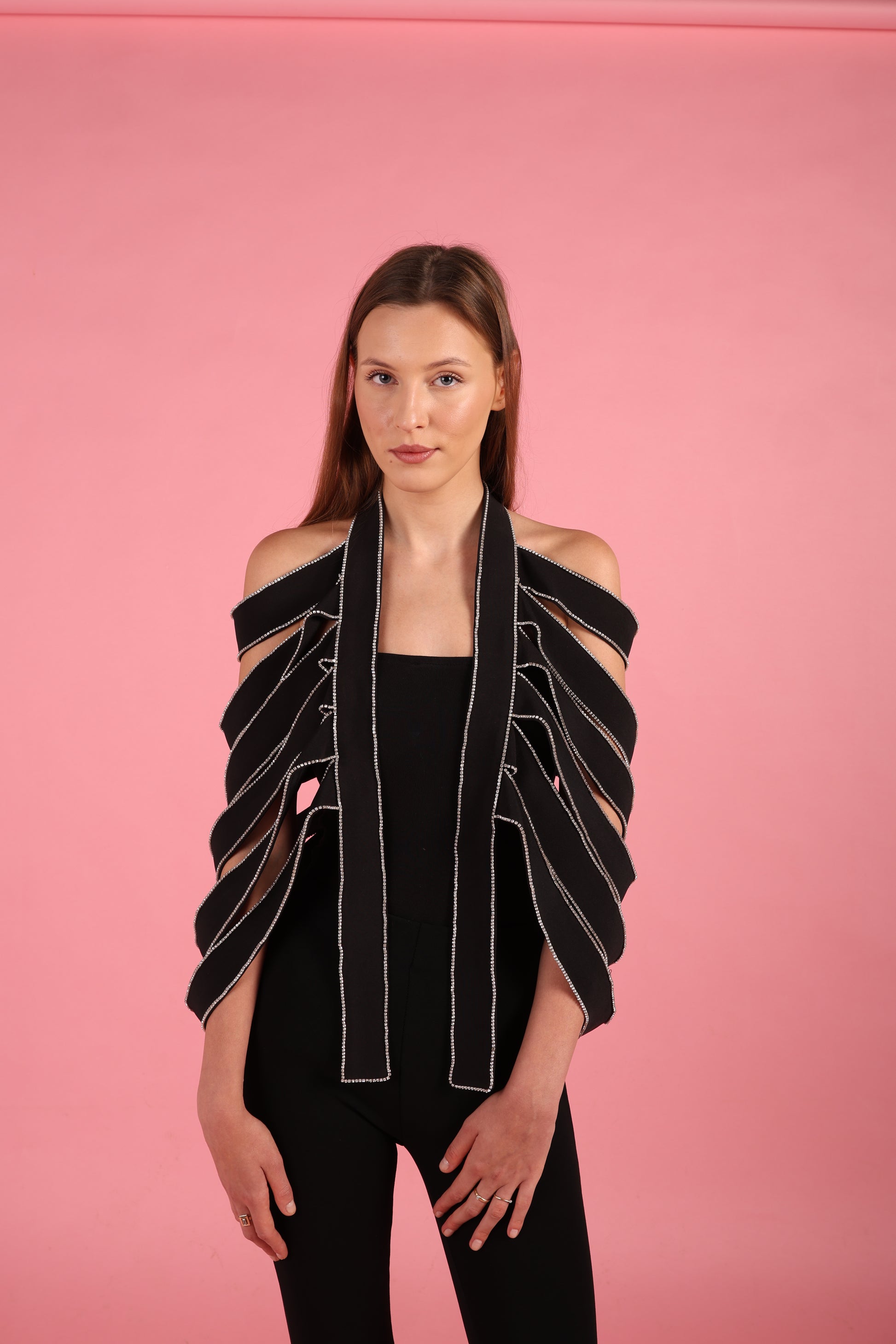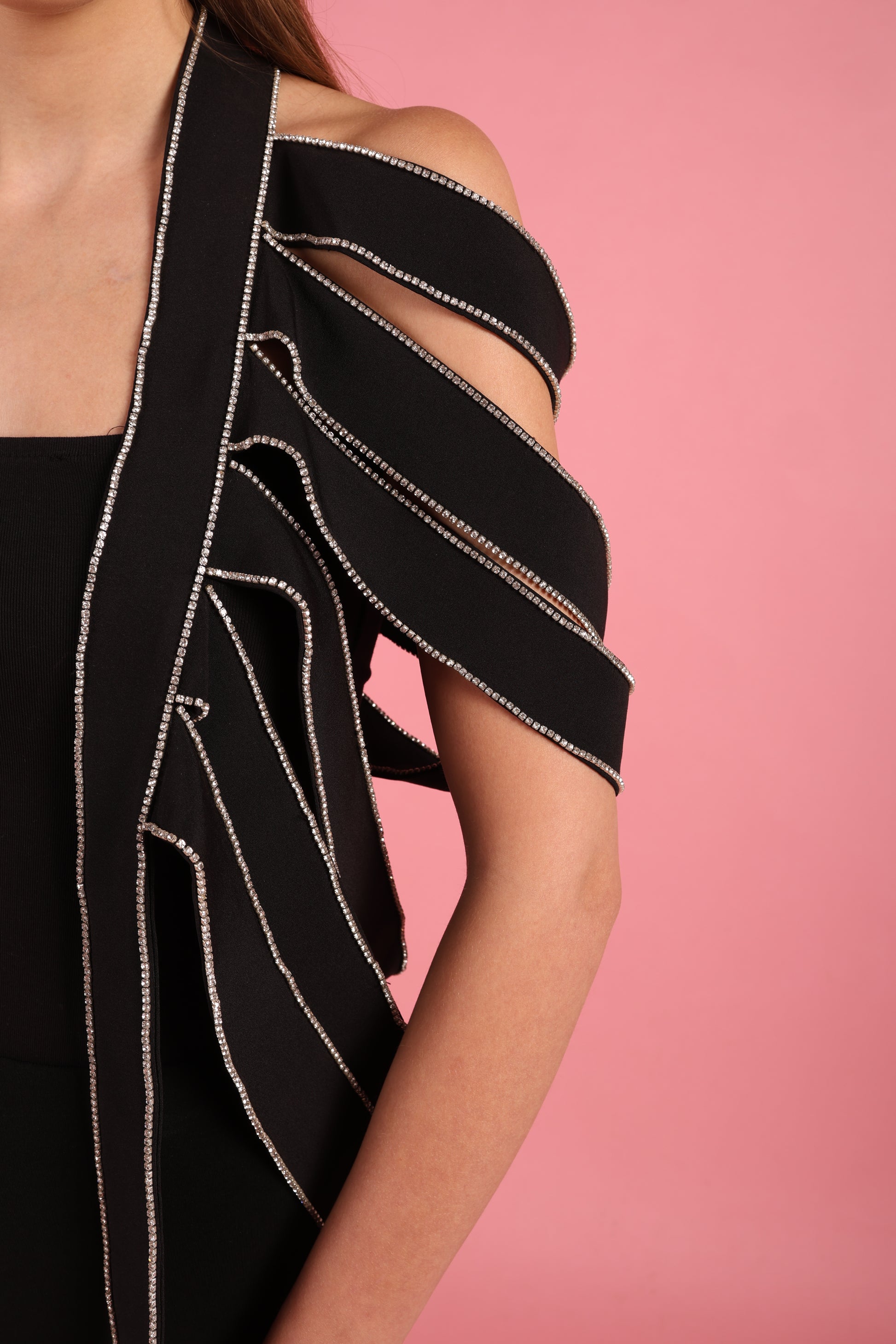 Black Strap Rhinestone Overlay Shoulder cape fits size36/48