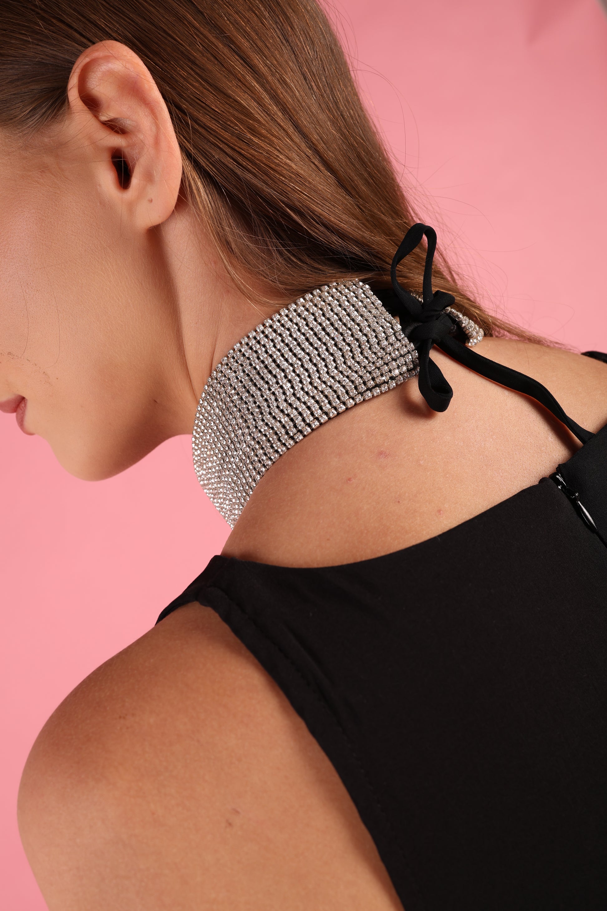 Instant party drama. This breathtaking crystal fringe choker features a structured collar and a dense, shimmering curtain of silver tassels. It's the only accessory you need to transform a simple black dress into a show-stopping outfit.
